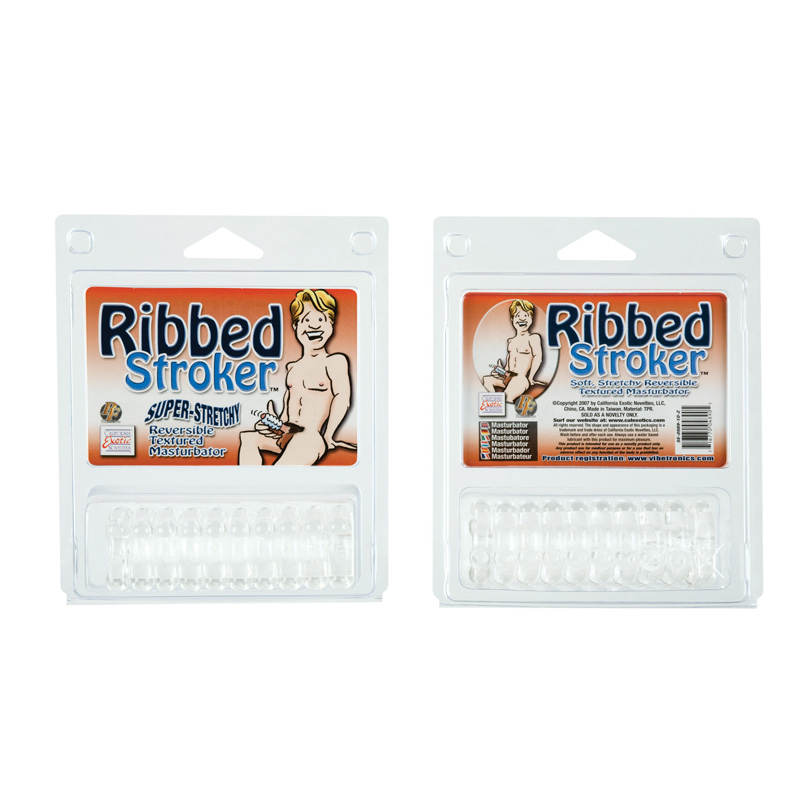 Ribbed Stroker Masturbator is a soft, stretchy, jelly stroker is reversible. Inside ribbing for extra stimulation. Safe and pure for body and pleasure. Made using phthalate free, non-toxic materials Thermoplastic Rubber TPR. Sleeve measures 4 inches long by 1.25 inches wide. Bulk weight 2.7 ounces. Always clean before and after use. A water based lubricant is recommended. Category: For Men, Masturbators, Non-Beaded. Ribbed Stroker Masturbator is a registered trademark for California Exotic Novelties. Sex toys and sexual wellness. New high resolution images added.